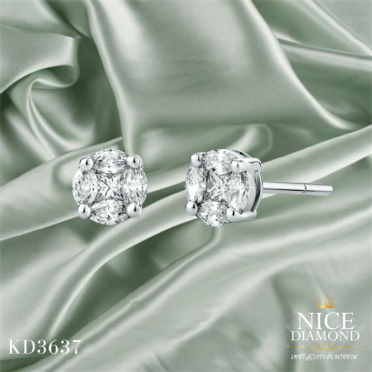 ต่างหูเพชร เพชรแฟนซีประกบทำให้เหมือนเพชรกลมเม็ดเดี่ยว ดีไซน์ตัวเรือนนำเข้า สวยหรูหราเก๋