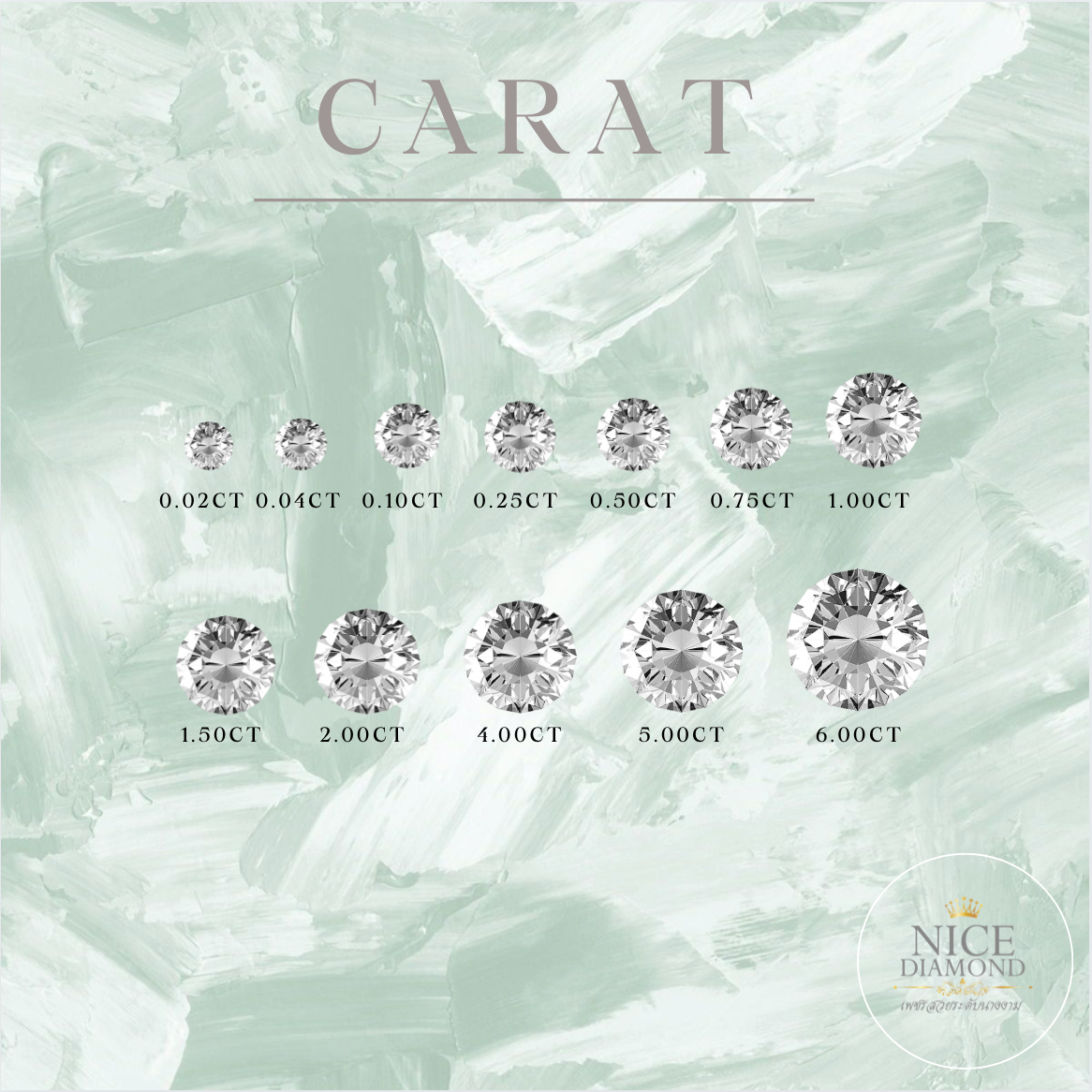 น้ำหนักของเพชรจะใช้หน่วยว่า “กะรัต" ใน 1 กะรัต จะมี 100 สตางค์ และ น้ำหนักเพชรยิ่งหนัก ราคาของเพชรนั้นก็จะสูงมากขึ้นตาม