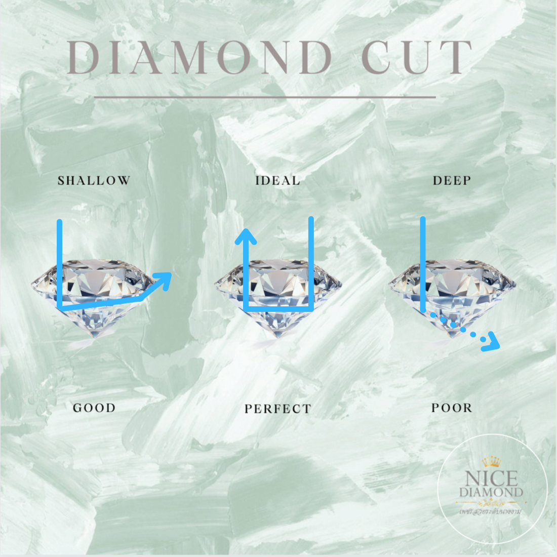 เข้าใจง่ายๆเลยคือ การเจียระไนเพชรให้ได้เหลี่ยม Heart & Arrow ที่เล่นกับแสงไฟแล้วส่องเป็นประกายสวยที่สุด นั่นคือเสน่ห์ของเพชร ซึ่งรวม Cut, Polish, Symmetry และแบ่งออกเป็น 5 ระดับด้วยกัน คือ Excellent, Very Good, Good, Fair, Poor