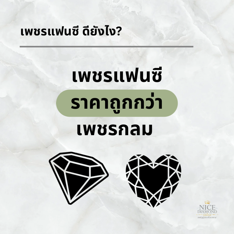 ที่จริงแล้ว "เพชรแฟนซี มีราคาที่ถูกกว่าเพชรกลม และ มีความนิยมมากในการใช้เป็นแหวนหมั้นและแหวนแต่งงาน"